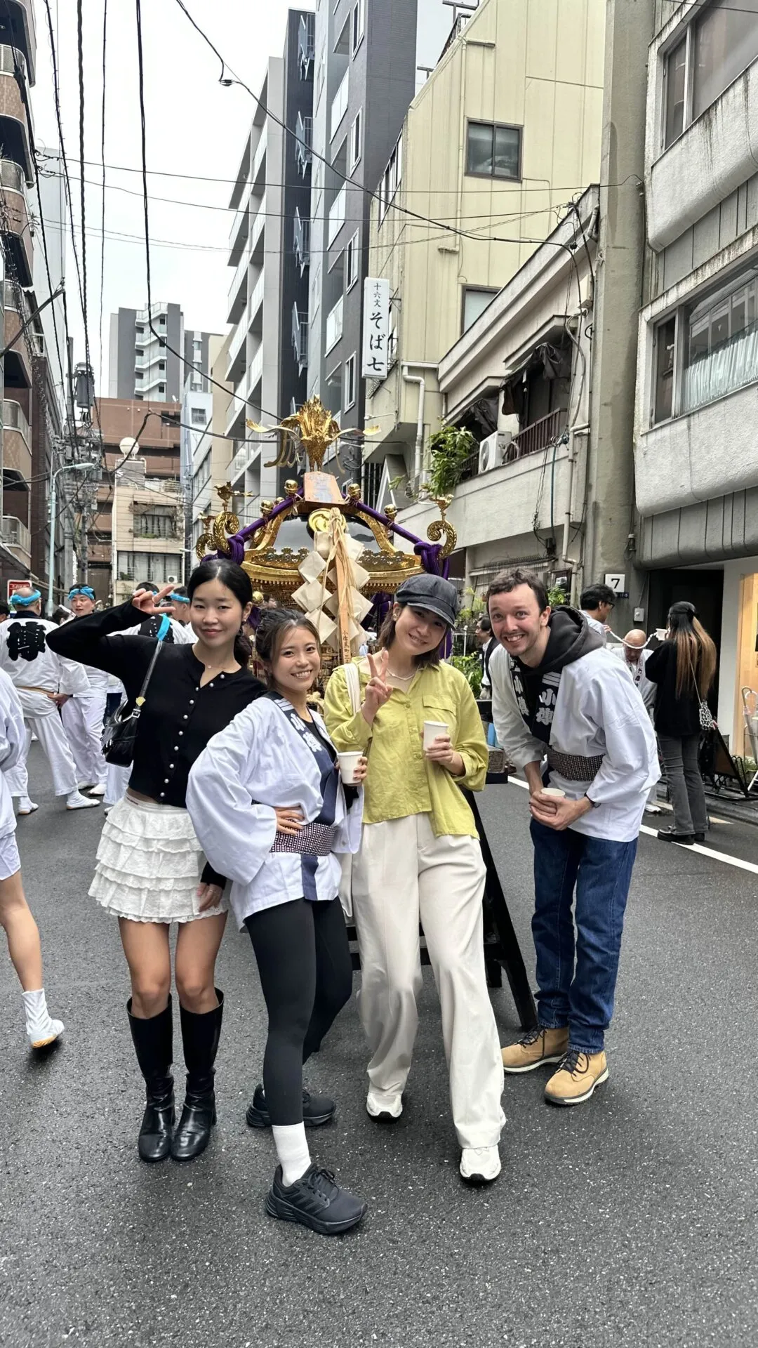 Le cœur du festival est souvent la procession du mikoshi, un sanctuaire portatif dans lequel réside temporairement un dieu. Les fidèles croient que lorsque ledit mikoshi est déplacé à travers les rues, la divinité purifie les lieux et bénit les habitants. C’est précisément ce sanctuaire que j’ai porté à plusieurs reprises et qui m’a laissé de beaux bleus sur les épaules. Mais je le referais sans hésiter !